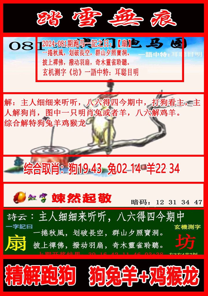 044期平鼠→鼠狗(2连)→鼠狗羊(3连) |